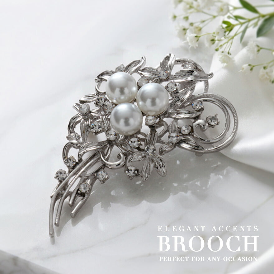 大粒パールとビジューが放つ、気品溢れる輝き。 ハレの日の装いをラグジュアリーに昇華する、 洗練された大人のシルバーブローチ。 |