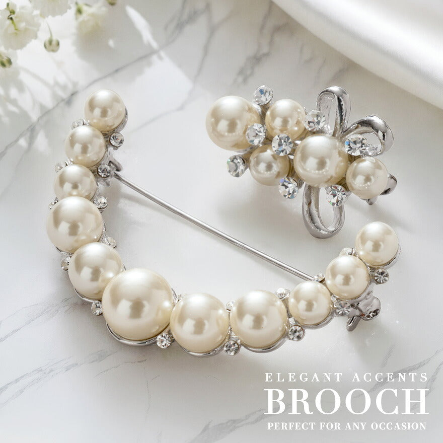 \ ハレの日の装いをさらに魅力的にクラスアップ / 洗練された大人のシルバーブローチ 【 アレンジ自在な大小2点セット 】 ![]() |